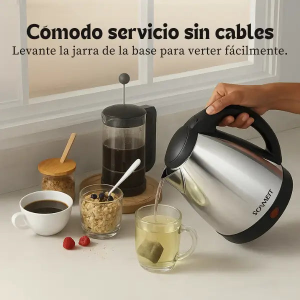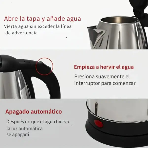 Con una capacidad de 2 litros, es perfecto para preparar té, café o cualquier otra bebida caliente en cuestión de minutos.