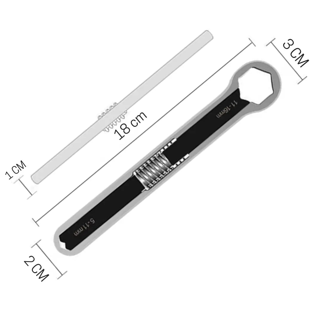 Con la Llave Universal, tendrás todo en una sola. Su acero de alto carbono te garantiza durabilidad y precisión, ideal para carros, motos o reparaciones del hogar.