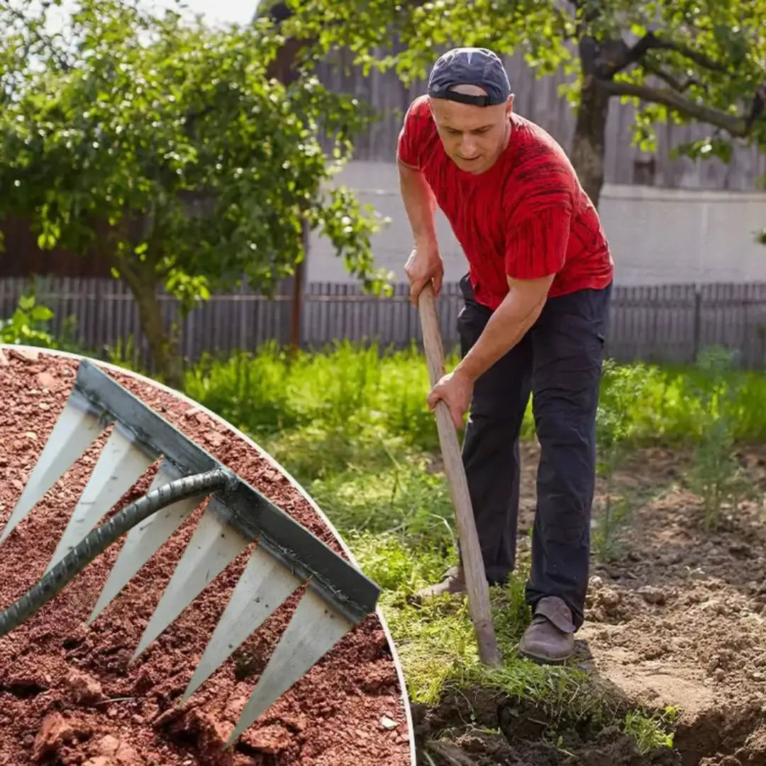 También cuenta con púas extremadamente afiladas que permiten una larga vida útil. Este rastrillo es ideal para paisajismo, cultivo y desmalezado.