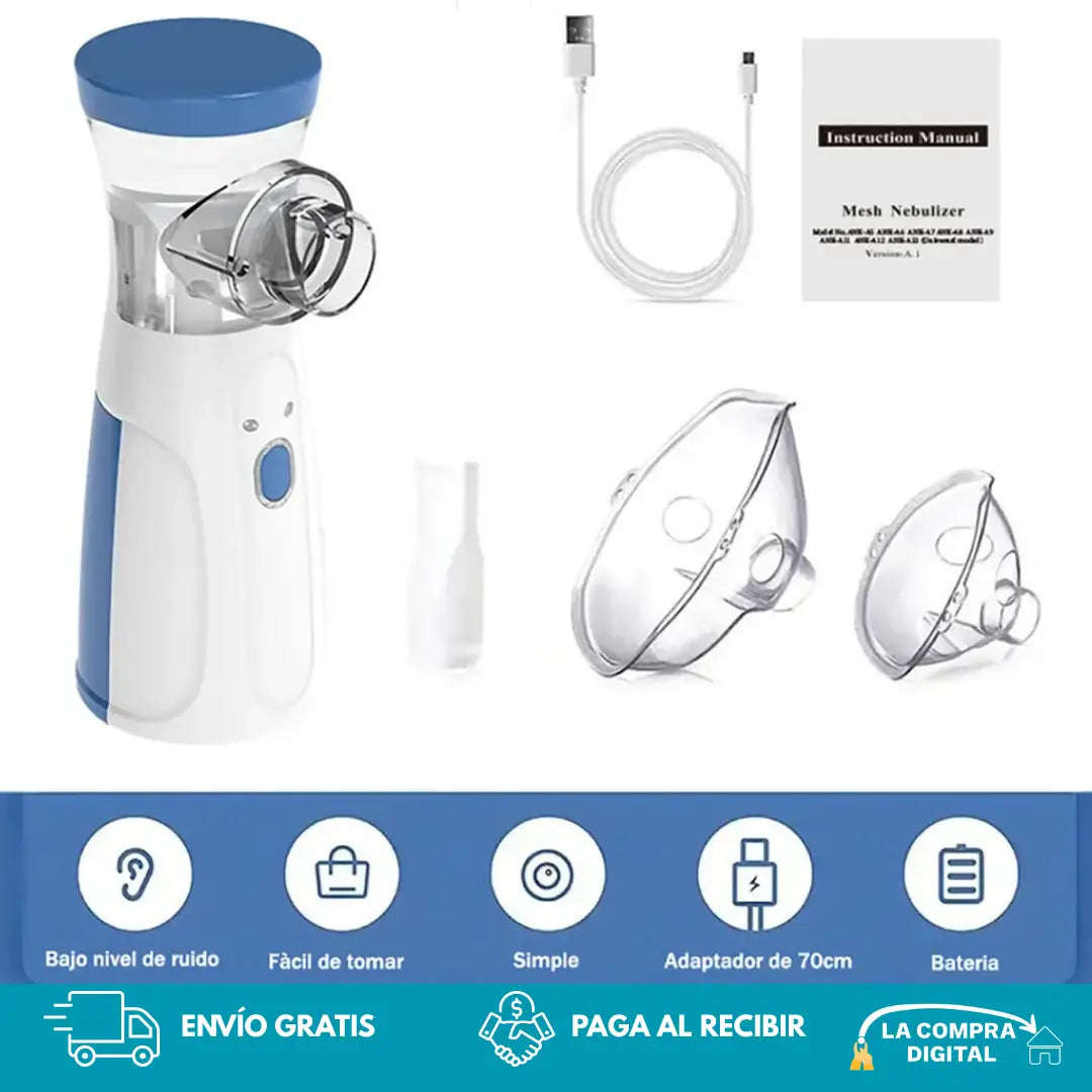 🌬️Contiene: nebulizador, máscara para niños y/o adultos, y un cable USB para carga.