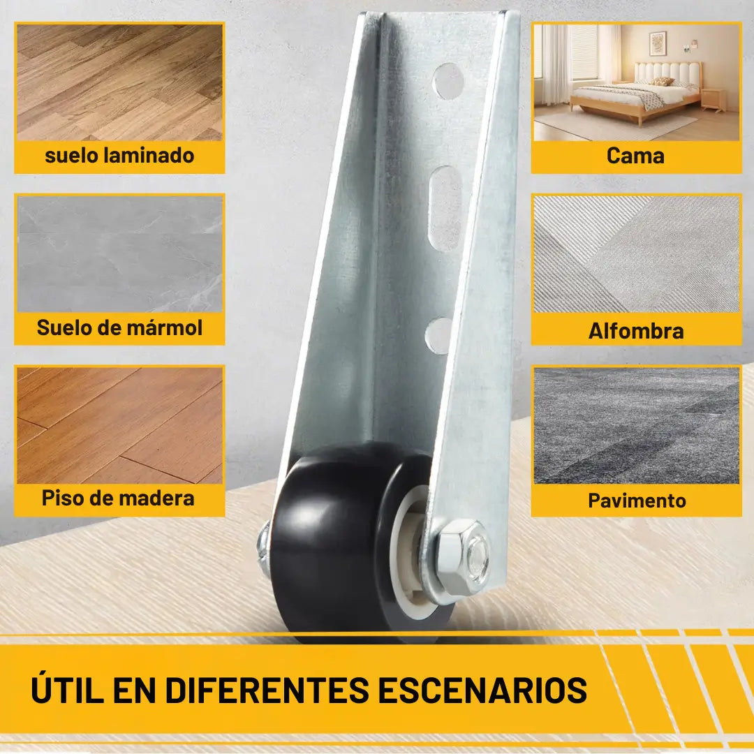 Es la solución invisible para mover tus muebles pesados sin rayar el piso y sin aumentar su altura. Su diseño compacto y doble montaje lo hace perfecto para cualquier proyecto de bricolaje.