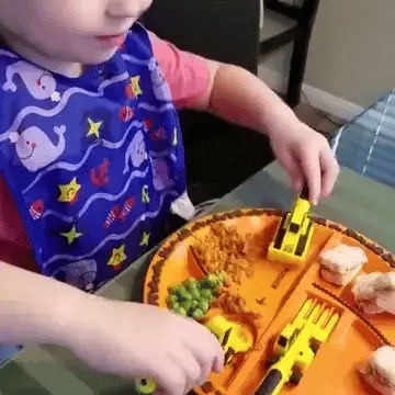 Esta divertida vajilla anima a los niños a tomar más iniciativa e independencia a la hora de comer y crea asociaciones positivas con la comida y el desarrollo kinestésico del uso de los utensilios.