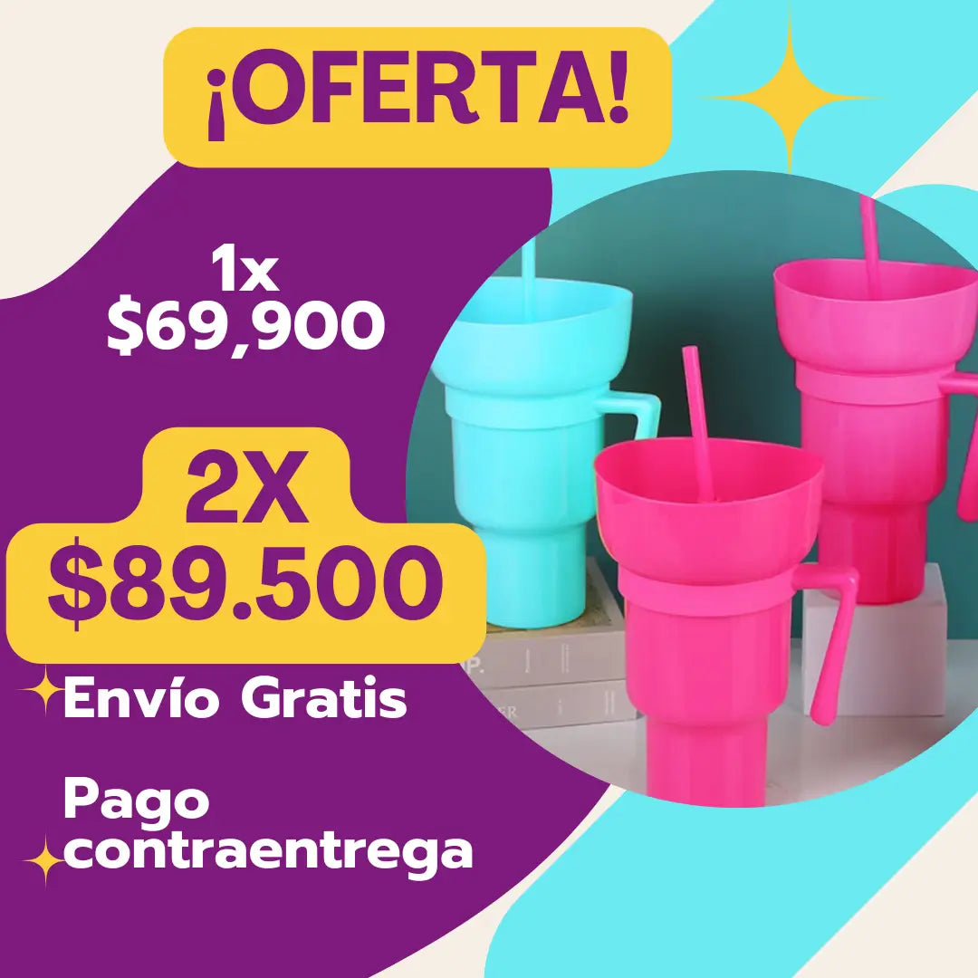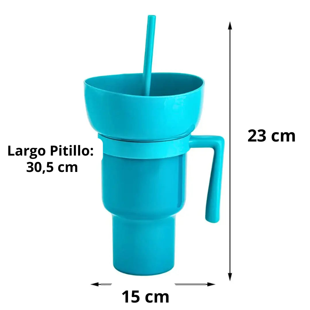 Este vaso te permite disfrutar de tus bebidas y snacks favoritos al mismo tiempo, sin perder ni un segundo de diversión.